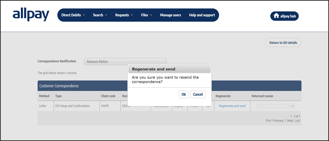 Payer’s Records: For the protection of Payers, allpay will maintain archive records of all communications with the Payer, i.e. Direct Debit Confirmation Letter and Advance Notice.