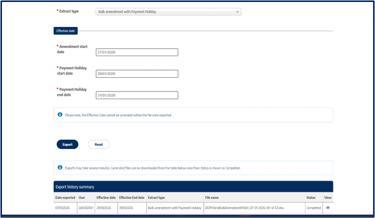 Payment Holidays and Bulk Amendments Combined