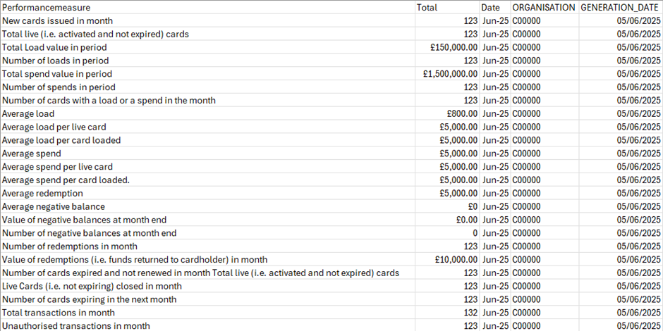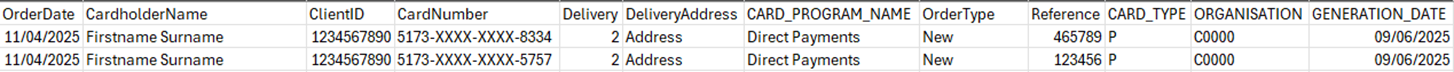 Personalised Card Orders – lists all personalised cards ordered within the date range: