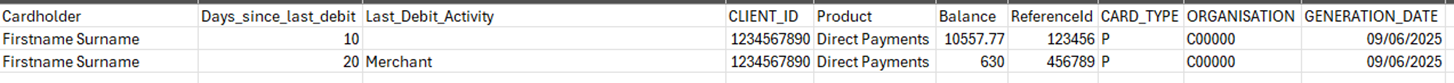 Failed Outbound Payments – a list of all Faster Payments or Direct Debits that have been made by your Cardholders that have failed