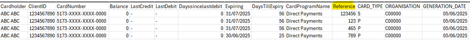 Cardholder Statement – allows you to generate data specific to an individual Client ID. It allows you to monitor and reconcile loads and spends on a card / account. If the Client ID entered is the ‘Primary’ Cardholder, the report will display any data related to the Secondary Cardholder also. - Reference not available.