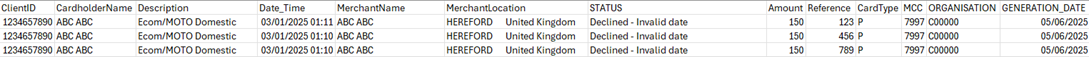 Card Expiry Report – shows a list of cards that are due to expire within the next 60 days: