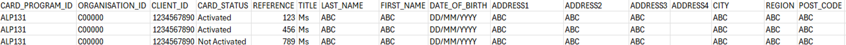 Card Status – a list of all Cardholders whose current card status is Not Activated, Blocked, Lost/Stolen/Damaged, Suspended