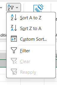 - From the Home tab, select ‘Sort and Filter’ then select ‘Filter’
